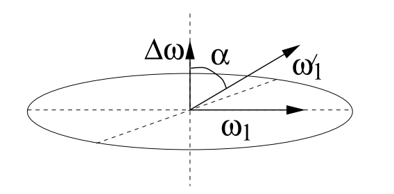 (4.35)#\[\begin{equation} \alpha = \arctan (\omega_1 / \Delta \omega) \end{equation}\]como se ilustra en la Fig. 4.7.